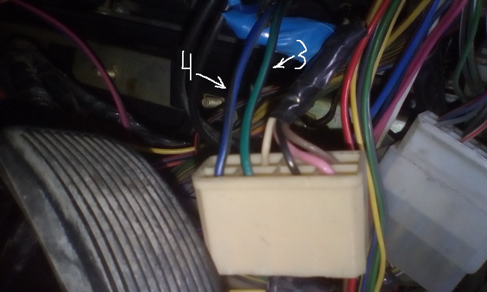 1-Отследить куда идут синий с черной полосой и зеленый с черной полосой от пинов 3 и 4 БУБД соответственно, не получилось, все перемотано изолентой.