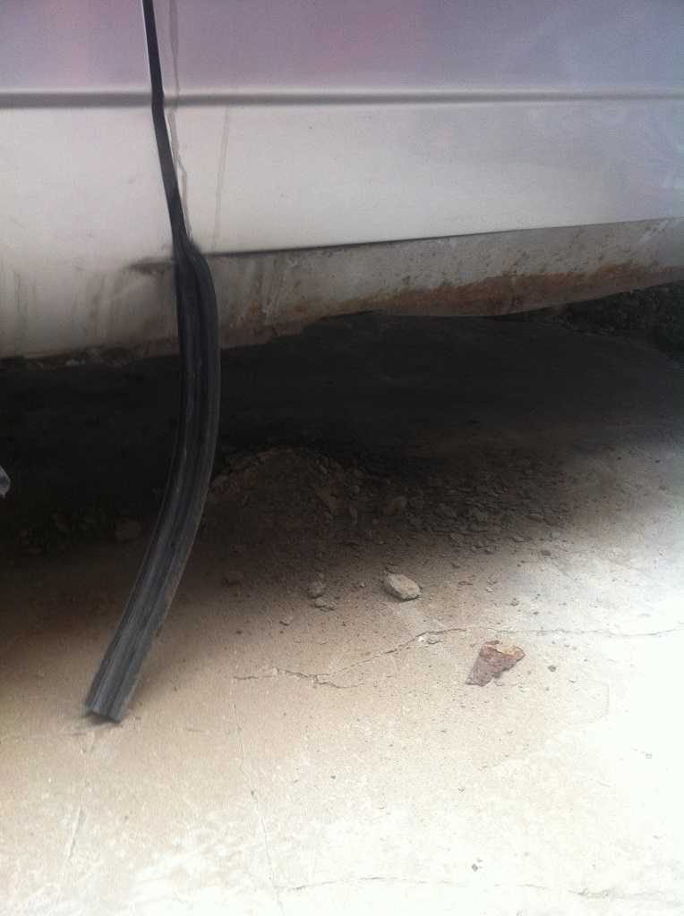 Пока боролся с протечками в салоне, ржа поползла род мастику с днища, стали куски дна отваливаться.