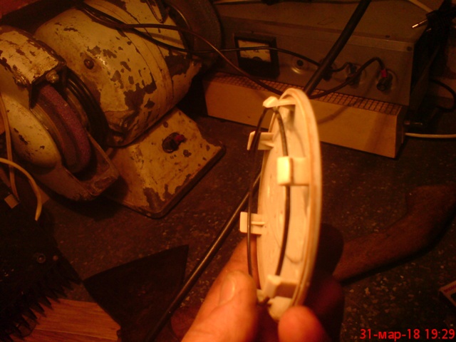 Стал менять колёса зимние,и заметил что заглушки в литых родных дисках вываливаются от небольшого нажатия.Защёлки пластиковые прогнулись внутрь и не пружинят на двух колёсах.Что бы вернуть их в первоначальное состояние,вставил внутрь пружинящую проволоку и дал время нагреться.
