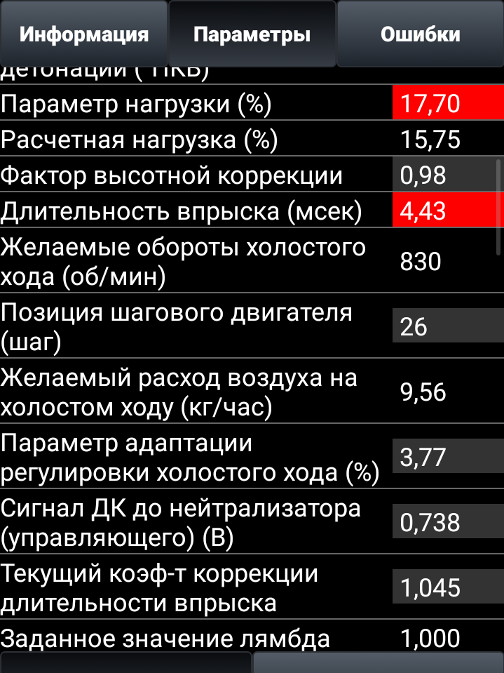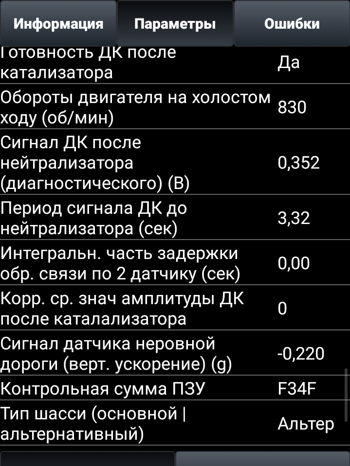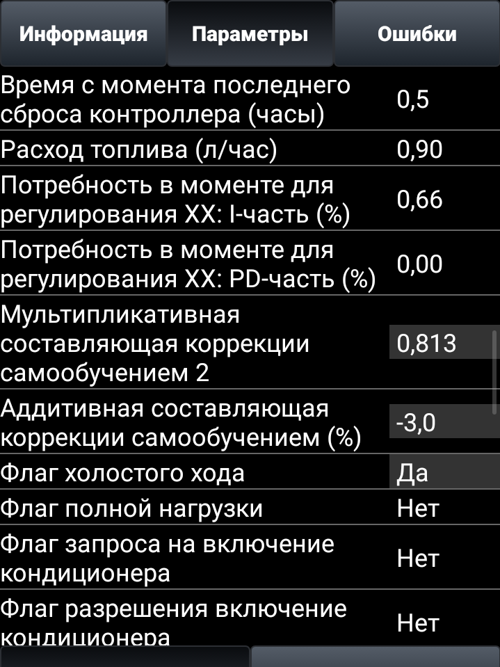 Параметры работы! Или ты думал, что подключил ЕЛМ, считал ошибки и всё, ты король диагностики? Smile