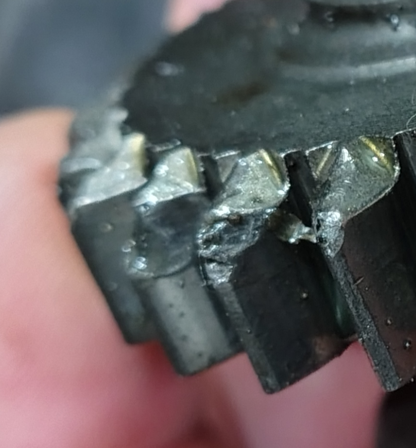 На шестерне задней скорости сколы на нескольких зубьях. На диске сцепления одна пружинка похоже выскочила со своего посадочного места и терла об диск корзины. На диске было 4 пружины, не видел ещё таких. На заводе наверное ставят.