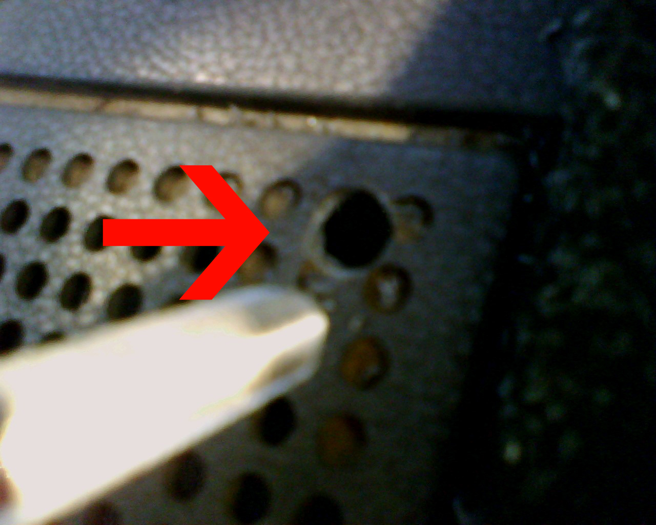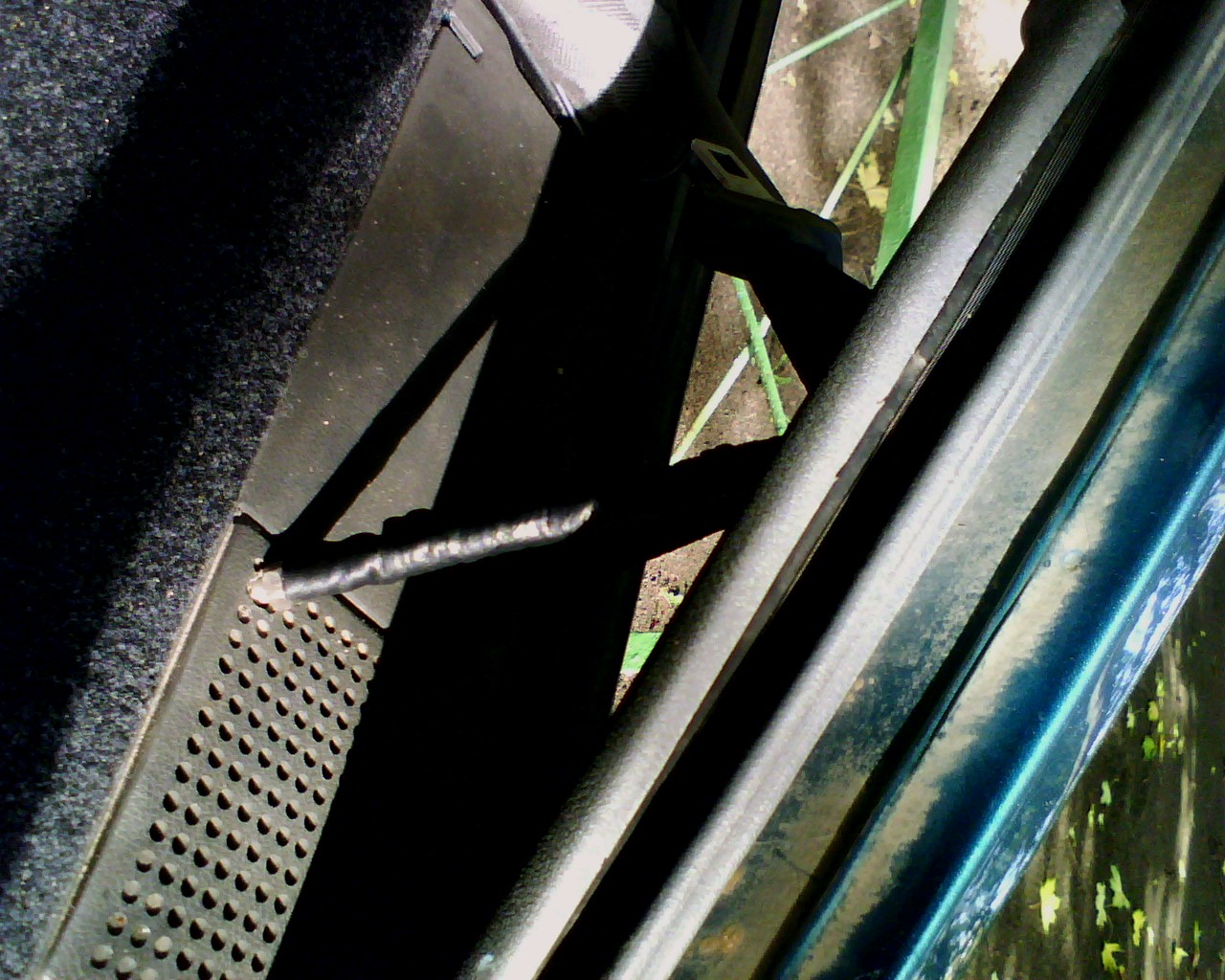 Сверлим отверсия в пластиковых боковинах в местах указанных на фото. (На фото левая плассмаска, взгляд со стороны крышки багажника)Даметр 9 мм. |