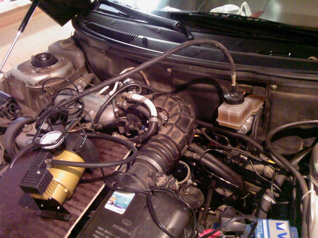 2) воздух в бачок подается с помощью отрезка шланга с двумя наконечниками от запасного колеса.
