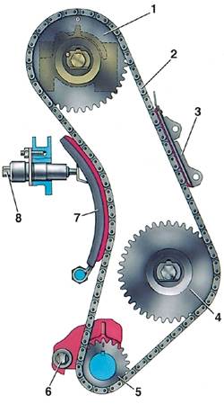 Ну и что что подрастянулась цепь? Натяжитель для этого и придуман. Он компенсирует растяжку цепи. Как думаешь, когда цепь сильно вытягивается и штока натяжителя не хватает, то народ ставит втулку на шток и метки при этом не уходят.