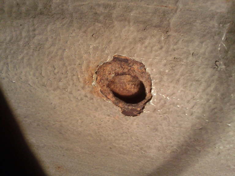 А что с дырой делать? варить - смысла нет, слишком маленькая, думаю, дедовский метод - эпоксидка со стеклотканью, или второй вариант - рассверлить на 12 мм, хорошенько обработать, и резиновую пробку туда загнать, типа еще одно дренажное Smile отверстие будет? Что скажете?