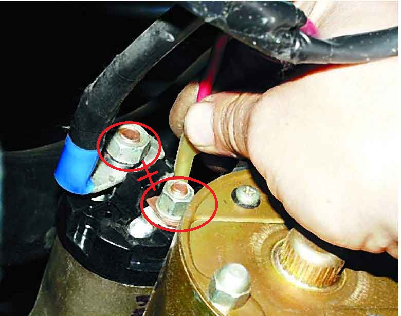 Нужно замкнуть одну (верхнюю...на которую приходит плюс с АКБ) гайку на фишку втягивающего. Гайки замыкать не нужно между собой.