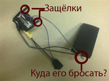 для начала нужно было убедиться действительно ли дело в датчике, для этого замутил такую конструкцию и пошёл включил зажигание, стрелка показала полный бак - вывод неисправен ДУТ.