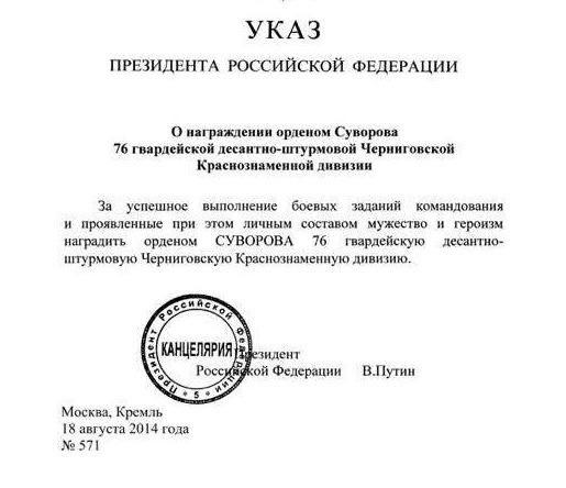 Десантники 76-й дивизии, присутствовавшие в Крыму во время недавних событий на полуострове, получили президентские награды. Как передает корреспондент Псковской Ленты Новостей, об этом на пресс-конференции 13 мая сообщил командир 76-й десантно-штурмовой дивизии Алексей Наумец.Озвучить точное число и фамилии этих офицеров и солдат он пока не может, но, как пояснил Алексей Наумец, в дивизии есть офицеры, которые приставлены к государственным наградам, некоторые получили благодарности от президента РФ Владимира Путина