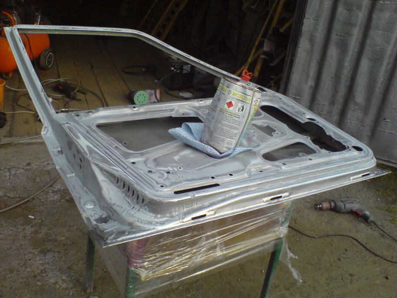Дверь я бы заменил, можно на разборе поискать или наружнюю панель заменть. Если акрил у тебя хс нужно было в 1.5 слоя лить.