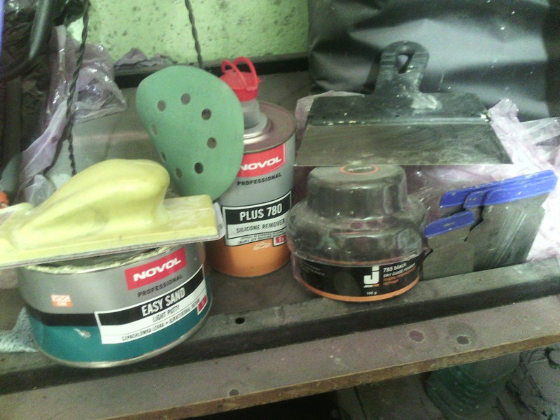 На 00 То что использовал. Терка. Желтая фигня на банке шпакли. Штука обязательная. По хорошему их надо хотяб три. Короткую, такую и длинную. Позже объясню в чем засада. Шпакля. Поскольку опыт только теоретический, то начитавшись форумов пришел к работе такой. (хотя для пробы купил разной) В чем прикол. По заявлению производителя это облегченная шпакля. Отступление. В теории шпакля это связывающая основа, + наполнитель. По сути отличие только в наполнителе. От мела до карбона. разделяются примерно так. С крупным волокном, для офигенных дыр и ям (стекло,карбон). Как бы не самый правильный способ ремонта, всеж лучше рихтовать и варить, но если очень приспичит, то вот. Требует, перекрытия более мелкозернистыми шпаклями. Люминька. В теории была разработана для крупных деталей подверженных температурным изменениям, (капоты крыши) Ну типа раз наполнитель по температурным показателям близок к металлу, дык и трескать не будет