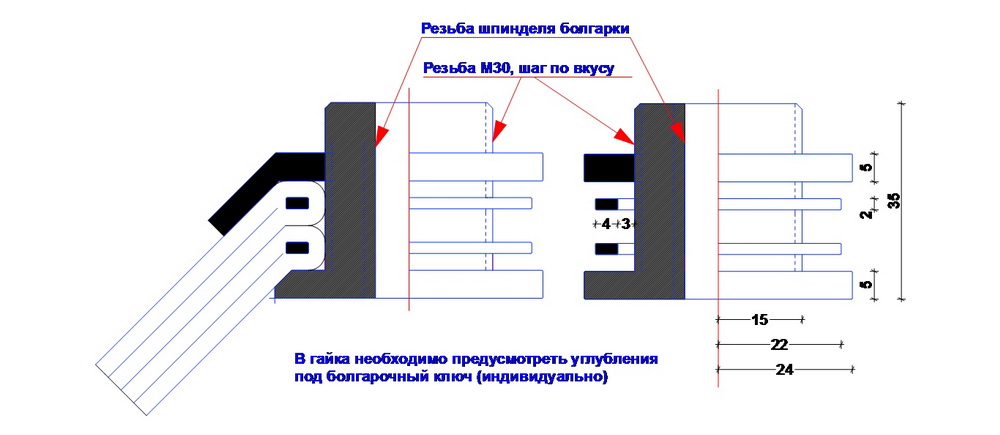 Ясно трос порезал, две шайбы, нижняя возможно под шлицы болгаровские, (хотя наверное и прямые зажмет).