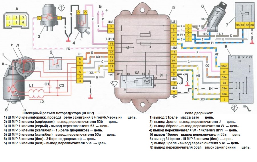Будем надеяться,что при этом правильном подключении дворники заработают как им положено и что дорожки в ЧЯ не сожгли таким колхозом.