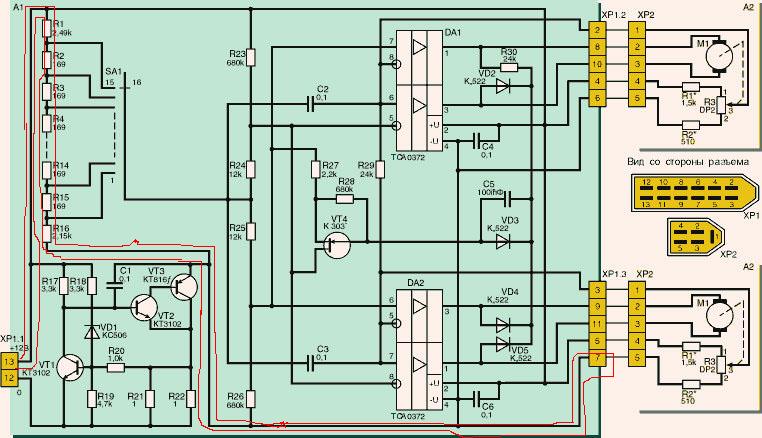 Не могу прозвонить мультиком цепочку (см. рисунок) между 13 и 6-7 пином колодки БУКа-33. Показывает какие-то страшные мегаомы, хотя должна звониться цепочка резисторов примерно 6,5 кОм. Может схема нынешних корректоров уже не такая?