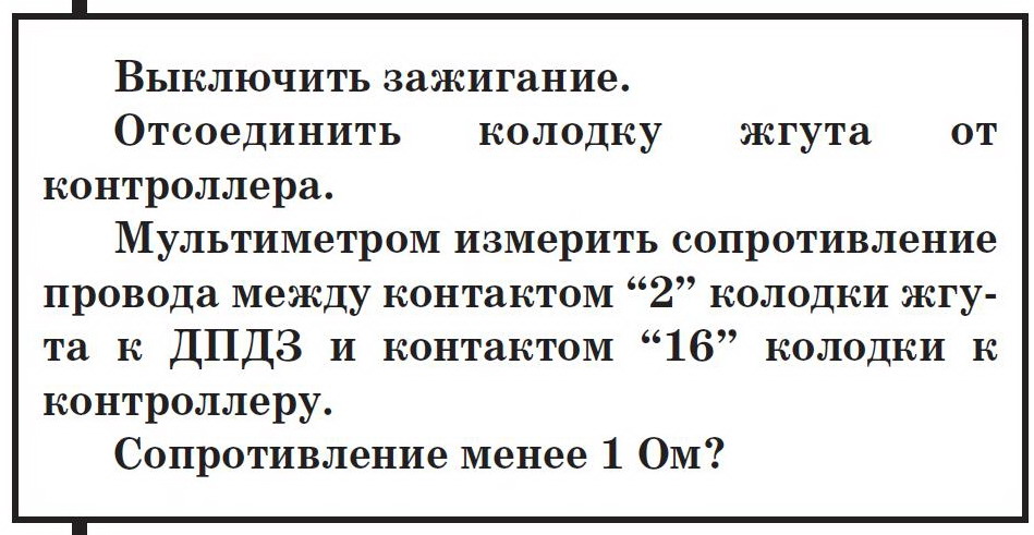 Ткнул один щуп в 1-пин разъёма ДПДЗ, а второй на кузов... и всего делов то, даже к ЭБУ не надо лезть/ корячиться, чтоб до его корпуса дотянуться, всё из-под капота делается. Wink