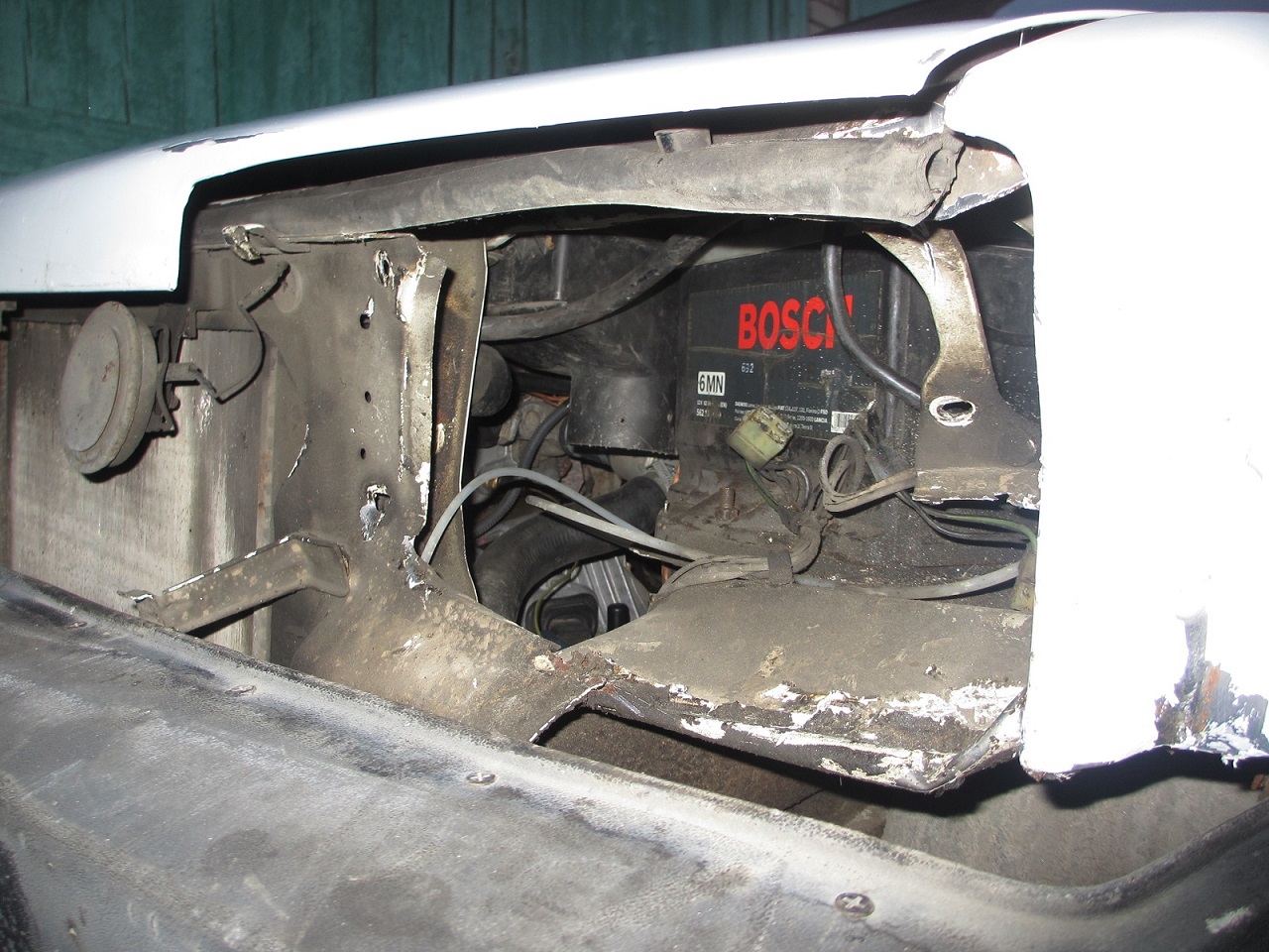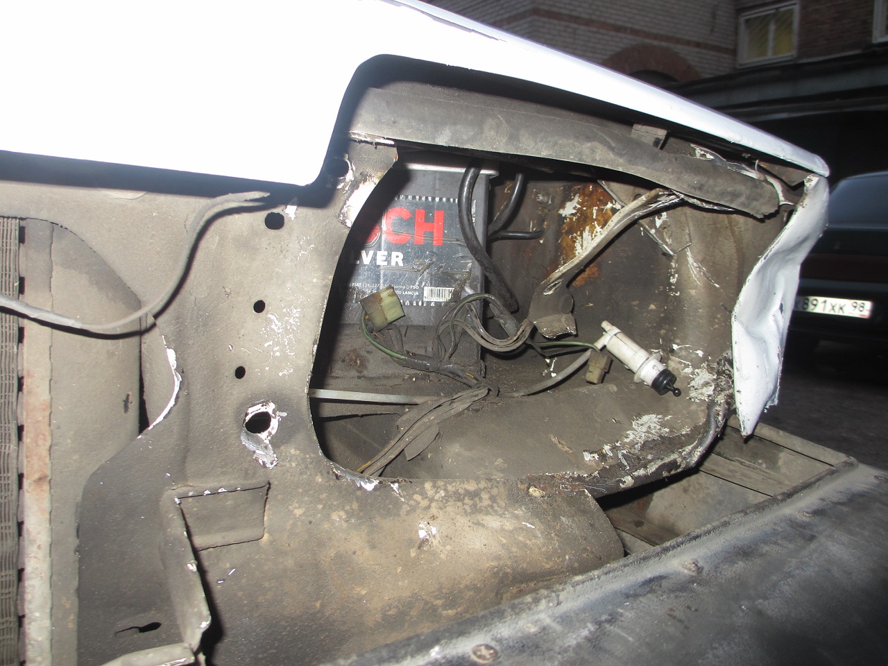 Далее были поиски запчастей. И о чудо: найден крашеный заводской капот без повреждений в моем цвете, немного царапанный и с вмятиной по кромке, но он мне подошел идеально.