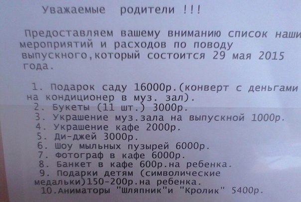Цитата:А теперь давайте займемся арифметикой. 11 500 с ученика + 4000 на фотографии+ 2000 с родителей =