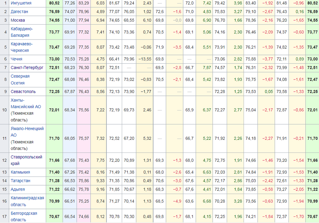 Вот касаемо таблицы, Москва и Питер, солнца мало и воздух грязный, а живут дольше многих.