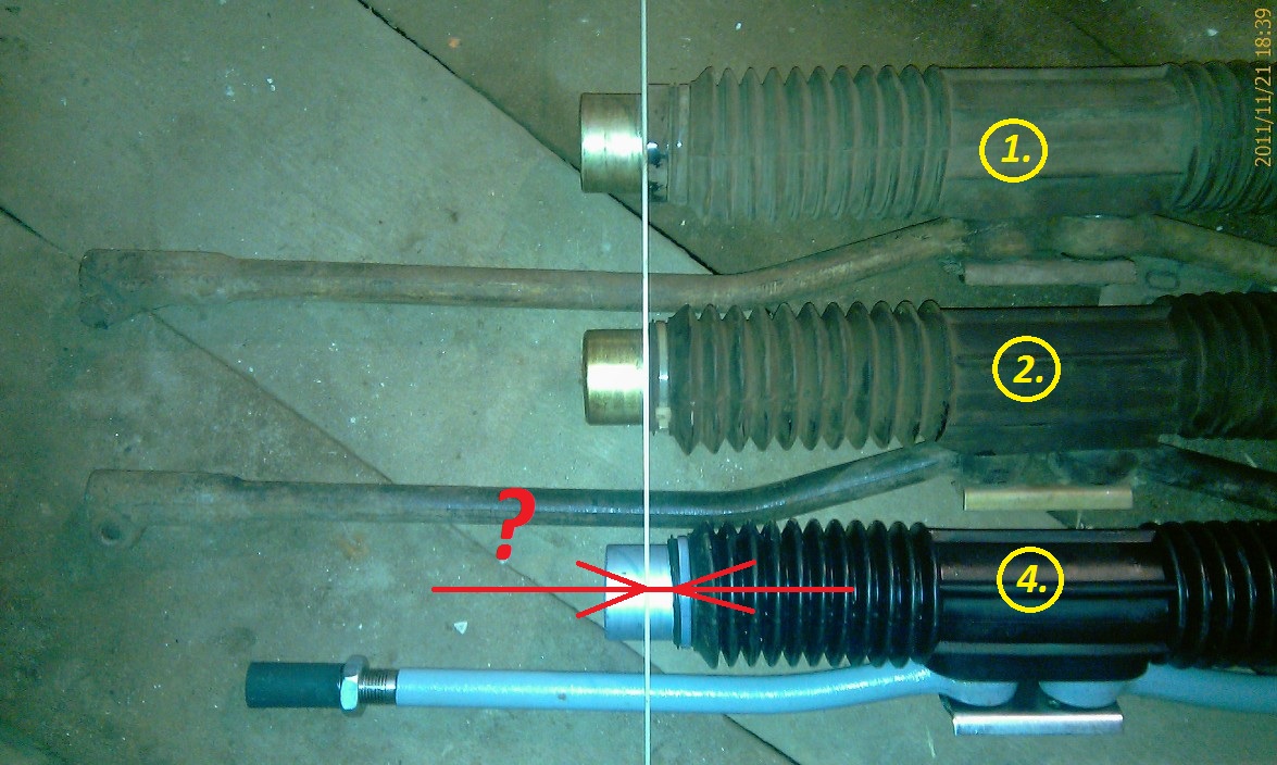 На фото - не все рейки восьмые, как их не называй. 1-я и 2-я - это 2110 старого образца, отличаются в первую очередь длиной корпуса на +10 мм, штампом на литье, усами (длиннее) и (не уверен) переменным передаточным отношением. 1-я стояла на машине снуля. При заменах на такую же 10-ю, а потом на чисто 2108 (без моего ведома) никаких переделок не было. Про возможный стук в кардане я сервисменам всегда говорил, но они его не находили, поэтому советовали менять рейку.