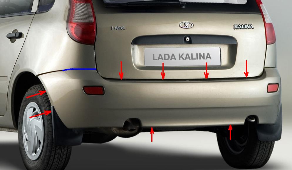Меня интересуют участки закругления углов пятой двери в зоне бампера (зазор по радиусу между бампером и 5й двери), а также плавность перехода линии бампера на фару. Нормальный зазор 3-4мм (по требованию ВАЗа на Калину 2-4мм зазоры в норме)