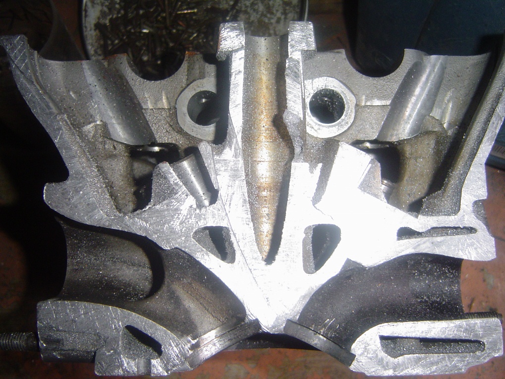 Поставили, слегка подпилив отливы в голове на сток пружины и клапана, в комплекте прикупив регулировочные шестерни. Даже допустим, что вал оказался практически полнобазным (32-33 мм). Подстроенный чип и огонь, мотор ожил. Серьезных манипуляций с каналами, седлами и входом в голове не производили. Ну так, фаски подправили и состыковали в лучшем случае. Ничего не забыл? Поправите, если что и дополните.