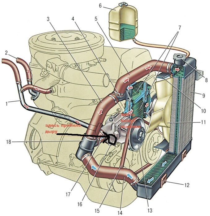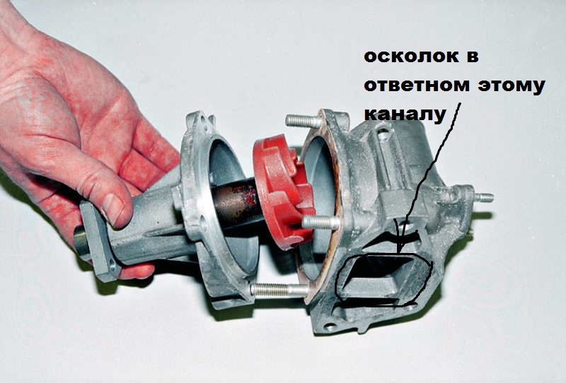 Короче разбило подшипник помпы. Затем крыльчатка помпы, а она была из алюминия, сделала большую дыру в корпусе насоса.