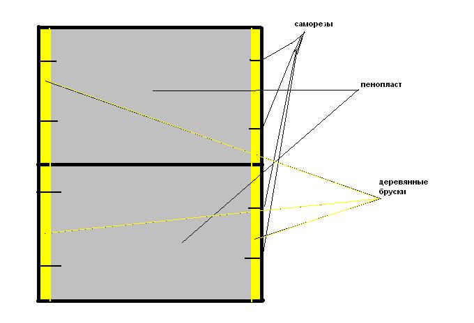 Решился все таки утеплить ворота.В гараже было много реек.Так что с этим проблем не было.Обшил рейкой по периметру ворот.Потом пошел на рынок и купил пенопласт взял 5 кв.м.(5 листов)Вышел на 250 рублей.(но всего потратилось 4 листа.За одно купил пистолет для пены (давно мечтал) и балон пены.Ну в 1000 уложился.И преступил .Сначала все разметил по местам,вырезал как надо.Потом по одной снимал намазывал пеной и приклеивал.В дальнейшем надоело просто делал дырки пистолетом и загонял пену.в общеем все закрепил.