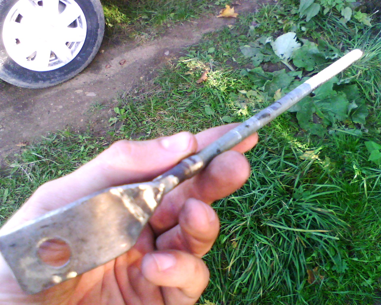 Если все подходит, берем полоски кожи длиной чуть короче штырька и обклеиваем наше изобретение. Исключите |