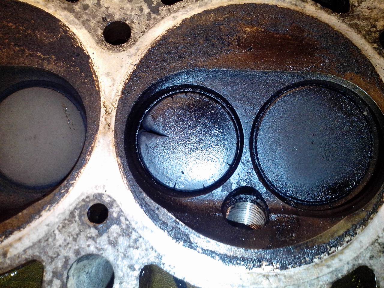 13, 8, 13, 13. Капнул 20 мл масла во 2-ой цилиндр, опять 8 кгс. Ну понятно что клапан. Разобрал, все остальные в отличном состоянии, а второй цилиндр прогар. Вот собственно фотки