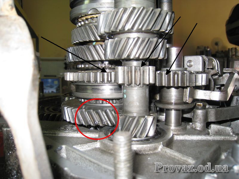 Попробую помочь. В принципе с такой неисправностью можно ездить, ничего страшного нет. Но ваша проблема в неправильной эсплуатации мкпп. Заднюю передачу надо включать на полностью остановившемся автомобиле, при оборотах двигателя не выше 1000, иначе происходит удар по зубьям шестерен соответственно: вал-шестерня или шестерня-венц муфты синхронизатора 1-й 2-й передачи. На фото стрелками обозначены места контакта поломки или задиров зубьев. Устраняется заменой неисправных деталей, как правило это: шестерня заднего хода, первичный вал, и венец скользящей муфты 1-й 2-й передачи.