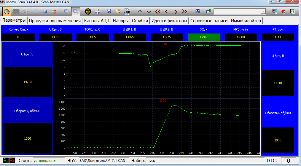 За одно не худо бы и давление в рампе при включении зажигания и при запуске (прокрутке стартером) .