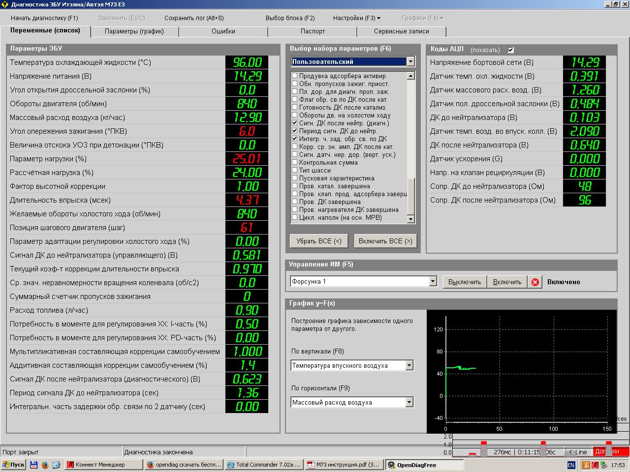 Всё это на 800 и на 3000 об/мин. Кроме того, первый раз нужно снять параметры до сброса ЭБУ (т.е. с накопившимся обучением), а второй раз сразу после сброса с инициализацией.