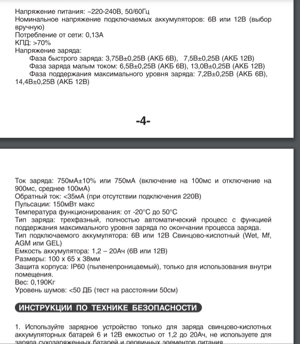 самовозгорание, хотя по характеристикам интеллектуальное устройсто с защитой от перегрева и переплюсовки. К сожалению даже наши разработки сейчас делаются в Китае. Наверно надо купить новый АКБ и похоронить эту идею, а паралельно, не спеша искать девайс с классом влаго защиты, кстати не подскажите какая должна быть маркировка. В руководстве этого прибора написано что им можно работать при -20 градусов, что меня и обрадовало.