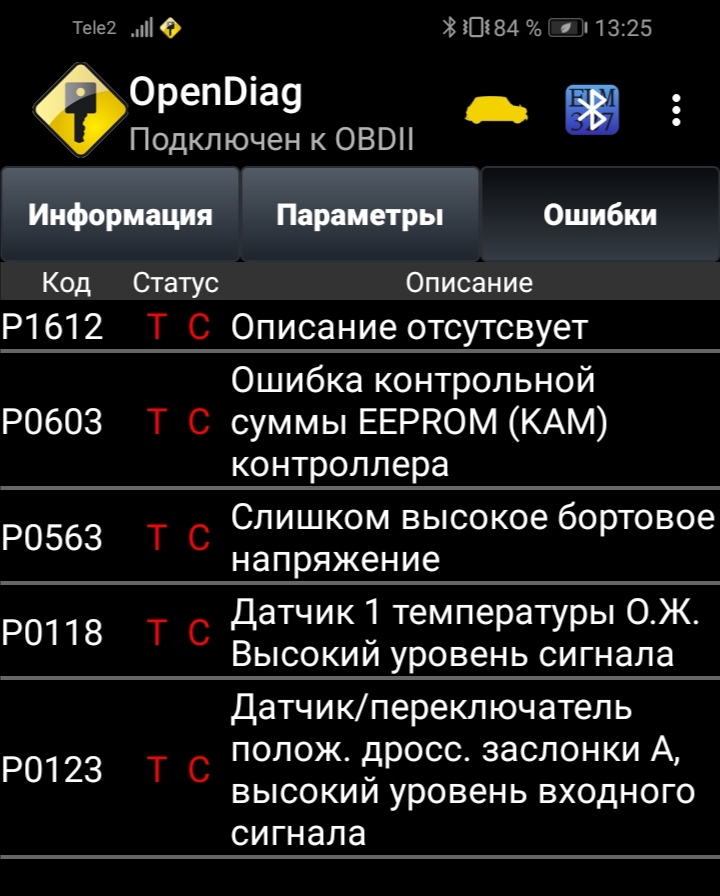 Результаты поиска значения кода P1612