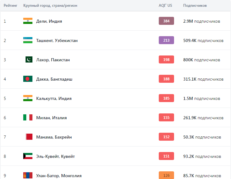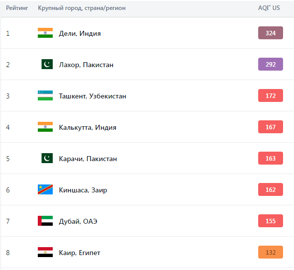Третье место в мире по загрязненности воздуха.