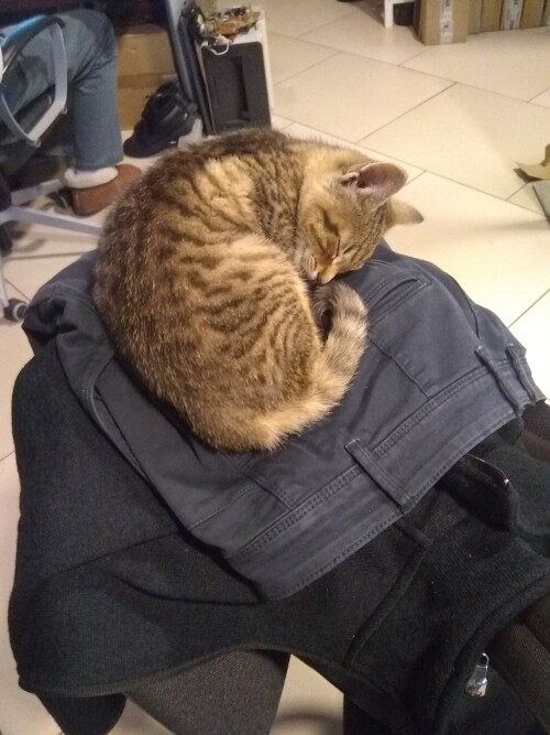 Ппц же ты зануда...я ни к чему не примазываюсь. Обнаружил кошку я, вытаскивать ее из под машины не было времени т.к. спешил, предупредил другого сотрудника под чьей машиной она засела и держала оборону. Приютили без меня уже, теперь офисная кошка, "дочь полка", нрав воинственный, охотится на сотрудников и принтеры