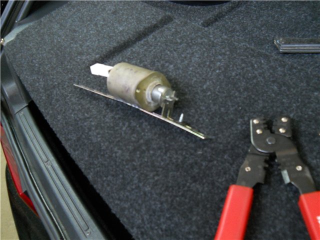 Можно я внесу свою лепту в эту тему.С появлением редукторных стартеров завода КАТЕК у меня в наличии появилось много В.К. от стартера .Так как размер его значительно меньше а мощность втягивания солиноида дикая я решил попробовать использовать его в качестве открывашки замка багажника на 08 -114.В качестве тяги троса сталистая проволока от КЕМПИ а оплётки кусок шланга омывателя стекла .Процесс установки виден на фото.