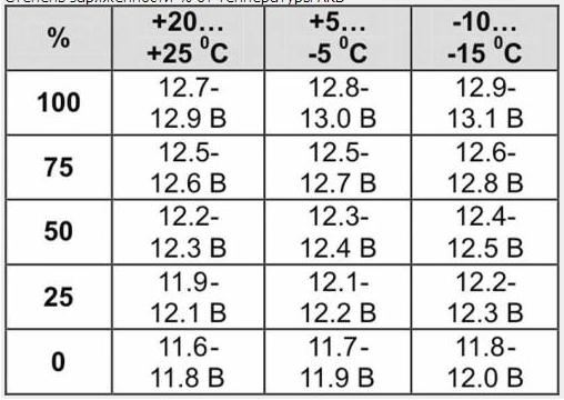После зарядки АКБ дома в тепле показывает 13v(после суток отстоя), а на морозе -25, 12,5-12,6v хотя по таблице должно бы быть около 13v