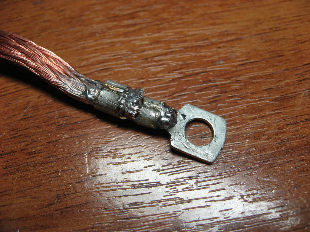 к выходным должны привести. А пока занялся минусовым проводом. Купил новый, в старом кабель начал слегка болтаться в клемме. Заодно купил массовый кабель. На обоих концах клеммы под болт на 8. Одну оставил, на другой конец поставил клемму на 6. все пропаял. И облагородил малость