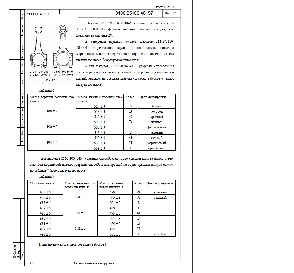 Я же тебе выше уже давал ссылку с классами и видом маркировки на поршнях,шатунах и пальцах...