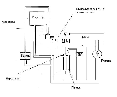 Вчера посмотрел фотки,кoторые выложил GPGriffin. Схема гранты,мне показалась эфективнее.Я так понял,что, малый круг толко через печку циркулирует,а большой,пока термос закрыт,не греется ващпе,так как термос закрывает верхний патрубок.Думаю это ГУД!!! Меньше потерь тепла,меньше жидкости греть,быстрее прогрев. А подогрев ду нужен.Его можно тройником с печкой соеденить. Ну что думаете господа практики? Я прям заинтересован. Может сразу на Гранта-СОД переделывать???