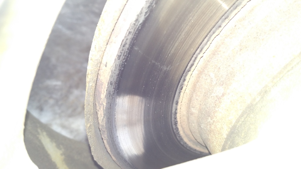 Там хороший такой разброс по дискам. 16 - это левый диск, а правый вообще 10 (тот, где колодку сожрало). И внутренняя сторона там выглядит как будто ее пилили рашпилем.