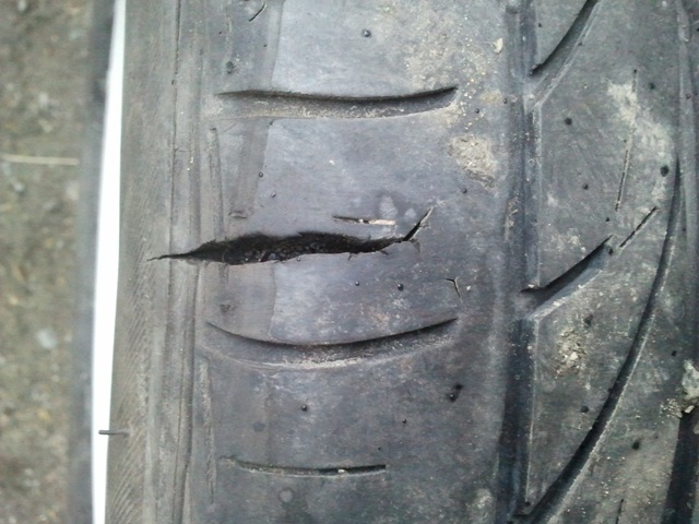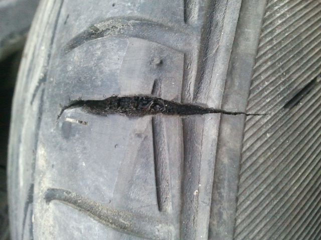 А вообще, этот момент очень напряг. Трещина изнутри, ее не видно. Если бы на приличной скорости покрышка лопнула, то страшная авария неизбежна... С другой стороны, каждую неделю снимать колеса и проверять - маразм.